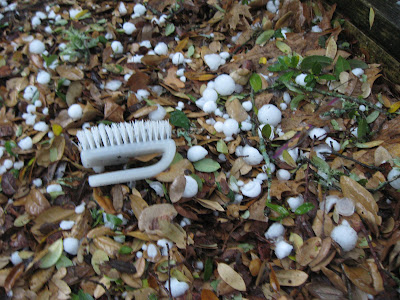 OMG! and I thought our hail was big! glad your car didn't get dented.sucks about your skylights though..